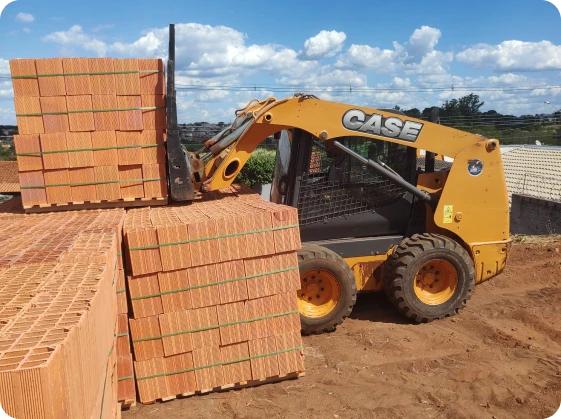 Receba seus tijolos e materiais com segurança e velocidade! Nossa mini carregadeira garante descarga rápida, organizada e sem quebras, otimizando seu tempo e reduzindo custos.